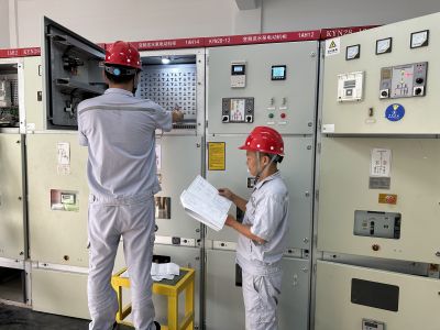 9月26日凌晨十二點半,為配合第二天早上高壓配電室小纜線一側(cè)的改造工作,機(jī)電設(shè)備部的人員在盡可能不影響市民用水的情況下,快速將主供電源進(jìn)行切換,做到了既不影響供水,又能為王英水廠二期施工創(chuàng)造安全條件。 9月26日早晨六點,施工單位人員準(zhǔn)時在高壓配電間開始了小纜線一側(cè)兩臺高壓電動機(jī)柜的并柜工作,為了盡快完成高壓配電室的改造工作,降低供水安全隱患,工人們爭分奪秒的搶施工進(jìn)度。終于,在下午五點鐘,高壓配電間新增的4臺高壓柜在檢測人員對其進(jìn)行交接實驗檢驗合格后,4臺高壓柜均順利通電,可順利開展后續(xù)的調(diào)試工作。