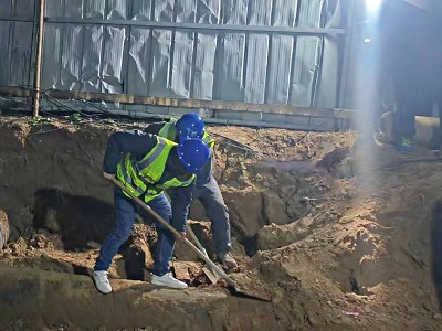 深夜是多數(shù)人夢(mèng)鄉(xiāng),卻是水務(wù)人的戰(zhàn)場(chǎng)。為了最大程度降低搶修對(duì)居民生活用水的影響,搶修工作一般在夜間進(jìn)行。聯(lián)合水務(wù)宿遷公司搶修團(tuán)隊(duì)以“故障不過夜”的工作作風(fēng),用行動(dòng)踐行“保障供水安全”的承諾。 “一場(chǎng)搶修背后的聯(lián)合之力” 傍晚臨近下班時(shí)分,機(jī)電設(shè)備部接到項(xiàng)目部緊急通知,二水廠五期項(xiàng)目現(xiàn)場(chǎng)有電纜疑似破損發(fā)熱,隨時(shí)有斷電風(fēng)險(xiǎn)。機(jī)電設(shè)備部人員經(jīng)現(xiàn)場(chǎng)查看發(fā)現(xiàn),由二水廠一期低壓配電室通往一二期反沖洗泵房配電間主電纜損壞,隨時(shí)可能影響一二期生產(chǎn)運(yùn)行。搶修就是命令,制水部、機(jī)電設(shè)備部、項(xiàng)目部快速分工,在保障安全生產(chǎn)的前提下,對(duì)破損電纜進(jìn)行了緊急搶修。搶修人員爭(zhēng)分奪秒,凌晨悄然而至,直到搶修隊(duì)伍中有人喊出一聲“回家!”,這場(chǎng)“夜間聯(lián)合作戰(zhàn)”才宣告結(jié)束。