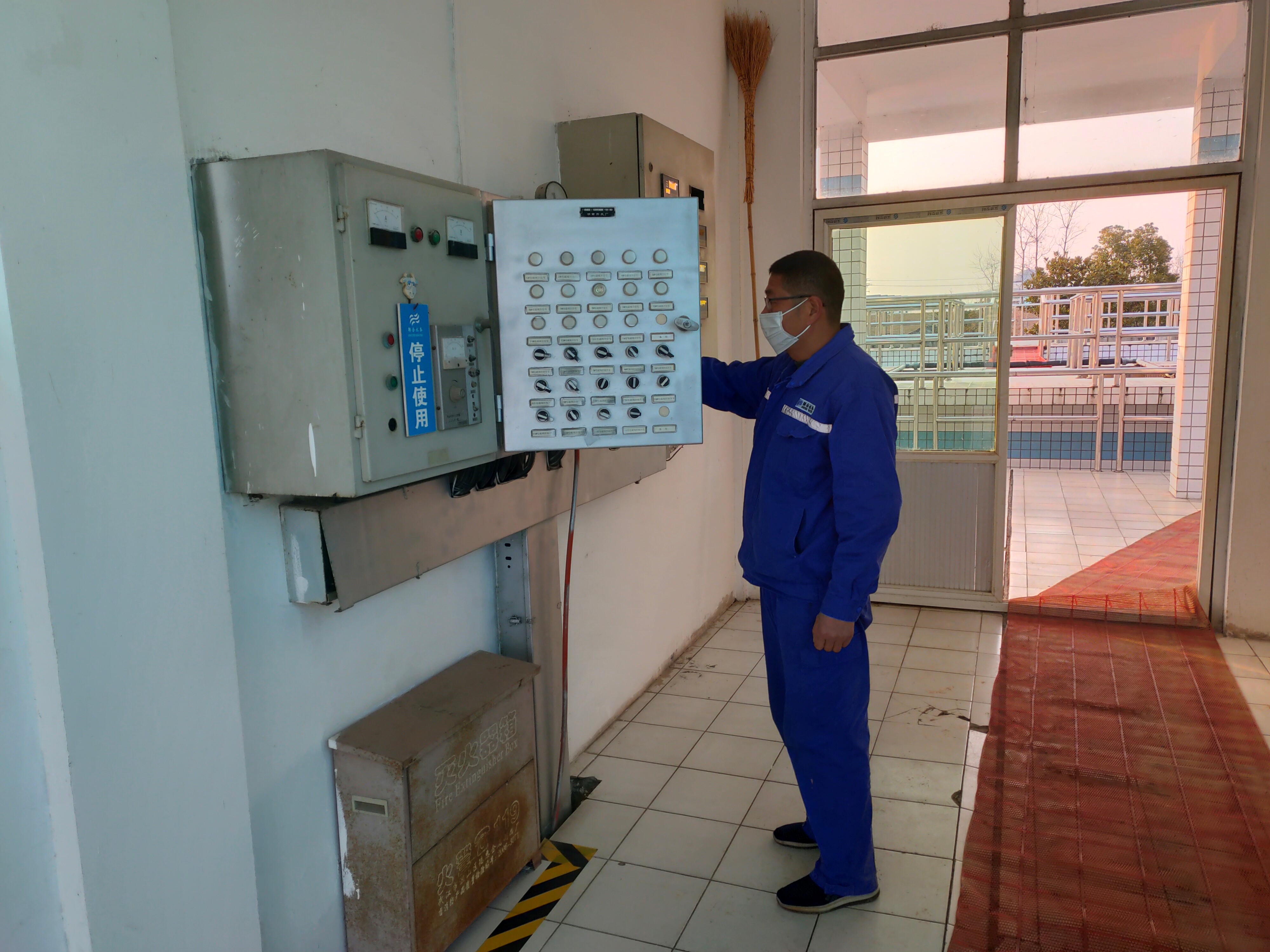 圖2:水廠值班人員日常工作 安全供水責(zé)任重大,值班人員不敢有絲毫馬虎,他們每隔1個小時,就要圍繞加藥間、沉淀池、過慮池、消毒池、送水泵房等各道工序運行情況進行巡視,確保發(fā)現(xiàn)問題及時進行處理,保證水廠高質(zhì)量、高標(biāo)準(zhǔn)的運行。同時還要根據(jù)原水水質(zhì)和水量的變化及時增(減)藥劑的用量,確保供水安全達(dá)標(biāo)。 受疫情影響,雖然水質(zhì)檢測人員不能全員到崗,但卻絲毫沒有影響到工作的正常進展。為了保證疫情期間水質(zhì)達(dá)標(biāo),水質(zhì)檢測中心進一步加強了日常的水質(zhì)檢測力度,增加了檢測水質(zhì)的頻率。在水廠每小時對工序水質(zhì)進行連續(xù)檢測的基礎(chǔ)上,水質(zhì)檢測人員每天對水源水和出廠水的濁度和余氯、耗氧量、氨氮和微生物等11項指標(biāo)進行檢測,確保水源水質(zhì)安全,做到出廠水水質(zhì)達(dá)標(biāo);對管網(wǎng)水25個監(jiān)測點每周采樣、檢測一次。并在本月中旬對原水、出廠水以及末梢水進行了42項常規(guī)檢測。最大程度上強化從源頭到龍頭全過程。經(jīng)統(tǒng)計,今年以來,城區(qū)供水水質(zhì)綜合合格率達(dá)到100%。 時刻待命,迅速出擊 新冠肺炎期間,市民居家不能外出,保障供水就是保障市民生存的生命線,任務(wù)艱巨,刻不容緩。咸寧聯(lián)合水務(wù)高度重視,進一步完善各類應(yīng)急預(yù)案,搶修隊24小時待命,確保一旦發(fā)生突發(fā)事件,能快速、有序、有效應(yīng)對。