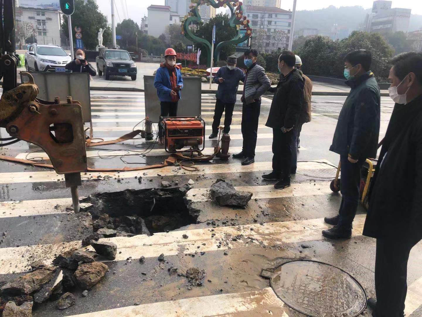 圖3:搶修保供水 1月31日上午,永安城區(qū)南山十字路口DN400供水主管因天氣寒冷、管網(wǎng)老化導(dǎo)致爆破。咸寧聯(lián)合水務(wù)搶修隊在挖掘機無法快速到達(dá)搶修現(xiàn)場的情況下,采用人工開挖方式帶水搶修,經(jīng)過搶修人員的齊心協(xié)力,圓滿完成搶修任務(wù),確保南山片區(qū)居民正常用水。 2月3日上午,市城管執(zhí)法委巡查時發(fā)現(xiàn)溫泉城區(qū)新二號橋中行段DN315供水主管爆破。咸寧聯(lián)合水務(wù)有限公司聞訊后迅速啟動供水搶修應(yīng)急預(yù)案,公司總經(jīng)理毛雄輝和管網(wǎng)分管領(lǐng)導(dǎo)李暉靠前指揮,用最快速度將供水搶修人員、工程車輛和物資調(diào)配到位,迅速開展搶修工作。搶修人員不畏疫情帶來的困難,不畏嚴(yán)寒,更是來不及吃中午飯,爭分奪秒實施搶修,經(jīng)過3個多小時的緊張作業(yè),提前2小時完成了搶修任務(wù),確保新二號橋片區(qū)居民正常用水。 眾志成城,共克時艱,疫情期間,搶修隊在王德勝和毛義兩位負(fù)責(zé)人的帶領(lǐng)下,共完成搶修工作30余次,他們篤定前行,分秒必爭,無時無刻不忘城市供水人身份,始終堅守在供水保障第一線,確保工作不斷不亂,平穩(wěn)有序。 志愿擔(dān)當(dāng),服務(wù)社區(qū) 時有所需,必有所為。咸寧聯(lián)合水務(wù)有限公司在保障城區(qū)正常供水外,公司黨組織還發(fā)揮黨團員帶頭作用,組成了一支30余名青年員工的志愿者服務(wù)隊,奔赴城區(qū)21個物業(yè)小區(qū),協(xié)助小區(qū)物業(yè)開展疫情防控工作。