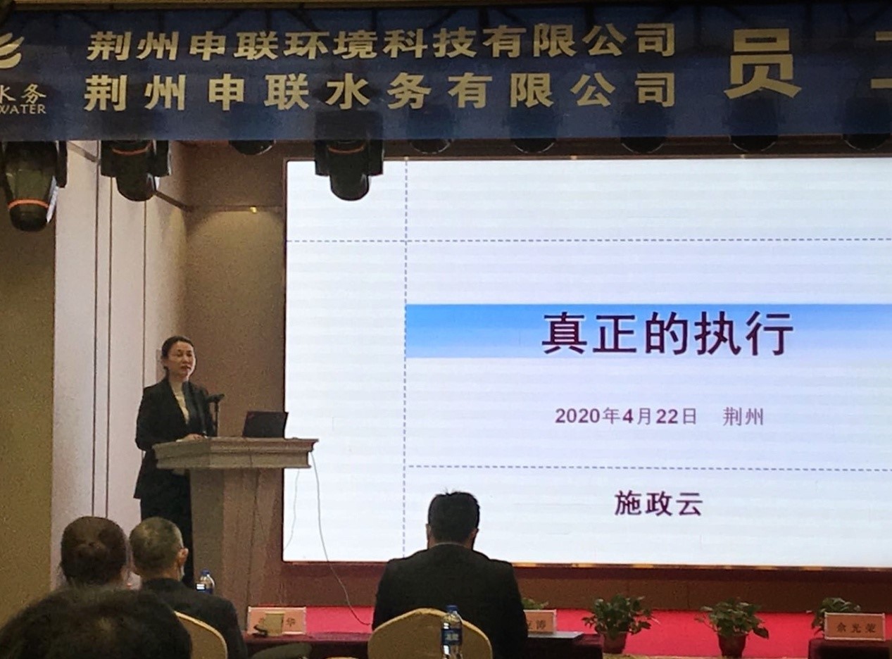 2020年1月17日聯(lián)合水務(wù)集團(tuán)公司正式簽約荊州經(jīng)開區(qū),取得了荊州經(jīng)濟(jì)技術(shù)開發(fā)區(qū)的工業(yè)污水項(xiàng)目特許經(jīng)營(yíng)權(quán)及生活污水項(xiàng)目的25年特許經(jīng)營(yíng)權(quán),至此,荊州申聯(lián)環(huán)境科技有限公司、荊州申聯(lián)水務(wù)有限公司(以下簡(jiǎn)稱“荊州申聯(lián)公司”)正式成立。 為幫助全體員工全面了解集團(tuán)概況及企業(yè)文化,營(yíng)造奮發(fā)向上、團(tuán)結(jié)協(xié)作的工作氛圍,幫助全體員工更好的適應(yīng)新機(jī)制、新環(huán)境、新崗位,4月22日至23日在荊州市盟達(dá)酒店二樓多功能會(huì)議廳開展了荊州申聯(lián)公司員工入職培訓(xùn)。會(huì)議由咸寧聯(lián)合水務(wù)有限公司人力資源部經(jīng)理陳紅主持,荊州申聯(lián)公司總經(jīng)理許應(yīng)濤,咸寧聯(lián)合水務(wù)有限公司人事行政副總經(jīng)理張偉華、咸寧思源水務(wù)有限公司常務(wù)副總經(jīng)理施政云、宿遷耿車污水處理廠廠長(zhǎng)趙祥祥等聯(lián)合水務(wù)集團(tuán)旗下多個(gè)項(xiàng)目公司高管及荊州申聯(lián)公司各部門員工共計(jì)40余人參加了培訓(xùn)。