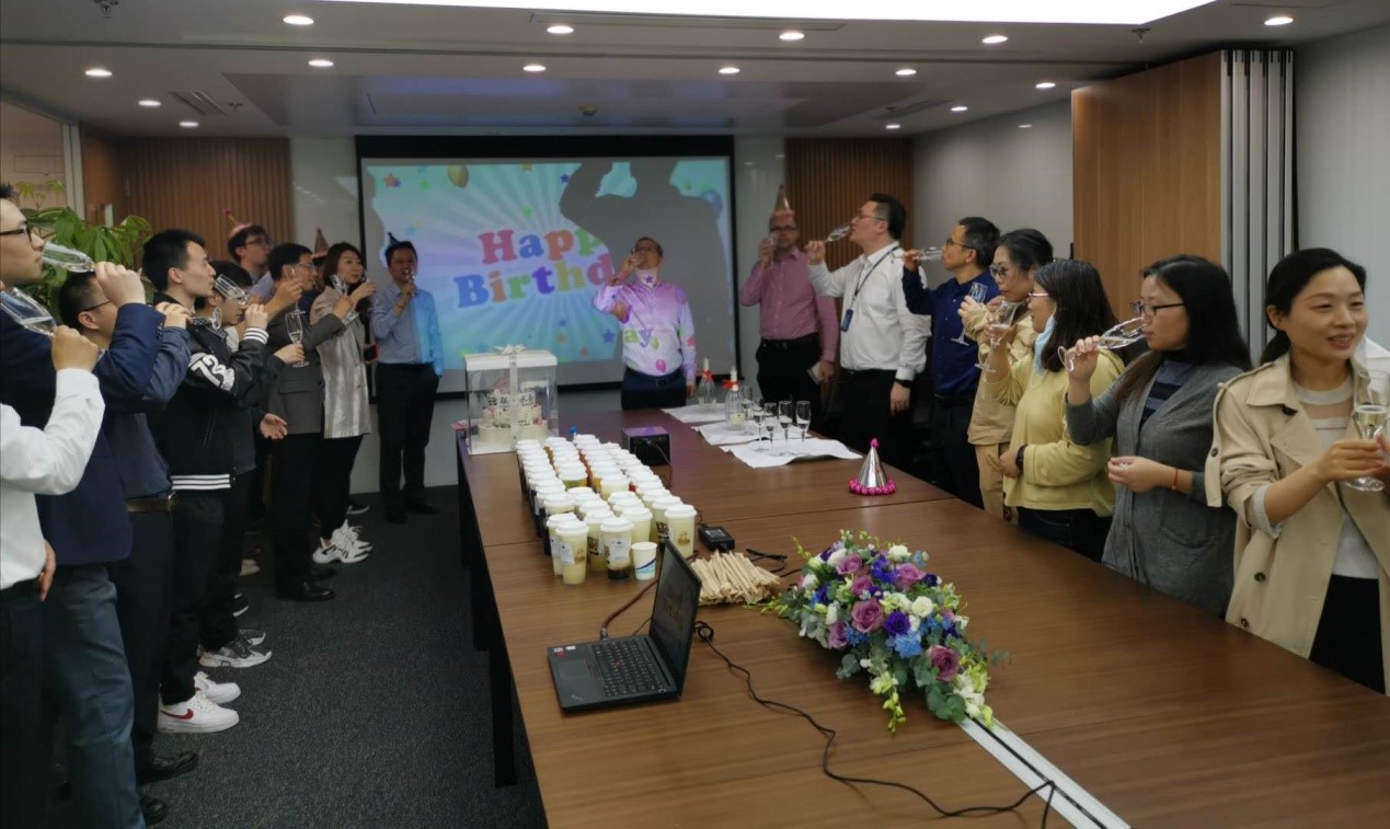 最是一年春好處,絶勝花柳滿門廳。伴著和煦的春風(fēng),趁著“五一”的來臨,聯(lián)合水務(wù)集團(tuán)總部新辦公室落成慶典隆重舉行,同期舉辦2020年一季度總部員工集體生日慶祝活動。 2020年4月29日下午,活動在聯(lián)合水務(wù)集團(tuán)上海總部新增新裝的南豐城16樓辦公室舉行。聯(lián)合水務(wù)集團(tuán)董事長兼總裁俞偉景先生、聯(lián)合水務(wù)集團(tuán)高級副總裁劉猛先生、聯(lián)合水務(wù)集團(tuán)高級副總裁陳樵先生、聯(lián)合水務(wù)集團(tuán)高級副總裁兼CFO James Beeson先生、上海總部全體常駐員工、孟加拉項目公司部分員工共同參與了此次慶典暨生日慶祝活動。 裝飾一新的16樓辦公室 大家?guī)е笠绲奈⑿Γ瑓⒂^了新落成的辦公室。面對整潔溫馨、大氣明亮、充滿現(xiàn)代氣息的辦公環(huán)境,大家不由豎起大拇指嘖嘖稱贊,紛紛移步門廳前臺,伴隨著相面快門聲,留下精彩瞬間。 門廳合影 慶典會上,行政經(jīng)理花曉萍女士作簡單開場后,由董事長兼總裁俞偉景先生致辭。俞總表示:聯(lián)合水務(wù)的發(fā)展壯大,離不開每一位聯(lián)合水務(wù)人的奮斗與努力,希望聯(lián)合水務(wù)人在新環(huán)境、新機(jī)遇下更加積極進(jìn)取,拼搏共贏。 俞總致辭 花徑不曾緣客掃,蓬門今始為君開。慶典會后,聯(lián)合水務(wù)集團(tuán)董事長兼總裁俞偉景先生向新入職且第一次參加總部集體生日活動的十名新員工表示熱烈的歡迎,鼓勵他們努力奮斗,在聯(lián)合水務(wù)的大舞臺上綻放光彩,同時祝一季度生日的James先生、黃露先生、黃翔宇先生、李金華女士、王臣先生生日快樂,向他們頒發(fā)生日書籍并感謝他們對聯(lián)合水務(wù)的奉獻(xiàn)。 聯(lián)合水務(wù)總部的集體生日活動自2009年2月起開始舉辦,至今已連辦12載。俞總表示,通過集體生日會活動,表達(dá)公司對員工的關(guān)懷,拉進(jìn)彼此間的距離,增進(jìn)友誼,促進(jìn)團(tuán)結(jié),給員工們帶來家的溫馨和感受。 溫馨歡快的生日會現(xiàn)場 昨夜斗已回北,今朝歲更起東。在這難忘的時刻,俞總邀請總部全體員工一起,共同舉杯,慶祝聯(lián)合水務(wù)集團(tuán)總部新業(yè)落成,祝愿一季度同事們生日快樂,祝愿聯(lián)合水務(wù)集團(tuán)水業(yè)大展、長興長盛,不斷開啟更加輝煌的篇章。 |