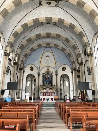 圖1:教堂外景 新絳天主教堂位于新絳縣的一座大型天主教堂,天主教新絳(運城)教區的主教座堂,位于新絳縣城北街頂端的高崖上。新絳是山西省最早傳入天主教的地方,1620年(明朝萬歷四十八年),意大利神甫艾儒略來到絳州,建立山西省第一座天主教堂。1935年,梵蒂岡教廷宣布成立新絳教區,是天主教在山西的8個教區之一,管轄附近22個縣的天主教堂。1937年,荷蘭神父孔昭明在此建造了一座哥特式建筑風格的大型主教座堂,于1943年落成。其建筑規模在全中國的哥特式教堂中屬于較大的一座,與青島、上海、廣州教堂并稱全國四大天主教堂。