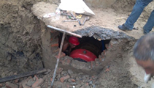 (圖12:管網維修人員在狹小的操作坑內進行管網搶修)