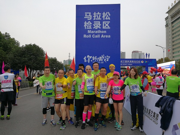 11月11日上午8點(diǎn),2017年咸寧國(guó)際溫泉馬拉松賽在咸寧市人民廣場(chǎng)鳴槍開(kāi)跑,本次活動(dòng)吸引了全世界的1.2萬(wàn)人參加,聯(lián)合水務(wù)集團(tuán)副總裁劉猛、陳樵、James Beeson先生及旗下6個(gè)項(xiàng)目公司的63名參賽隊(duì)員匯集香城泉都,代表聯(lián)合水務(wù)傾情助力本次馬拉松大賽。 當(dāng)天7:20,集團(tuán)63名參賽人員和咸寧公司70名啦啦隊(duì)和服務(wù)人員,在起點(diǎn)人民廣場(chǎng)集中,高舉“新起點(diǎn)、新征程、新時(shí)代、新作為”、“聯(lián)合水務(wù),服務(wù)咸寧”的橫幅,大家步伐整齊,揮舞彩旗,方陣格外引人注目,為本屆馬拉松賽事增添了一抹亮麗的風(fēng)景。 (圖1:集結(jié)出發(fā)) 隨著發(fā)令槍聲響起,參賽隊(duì)員扛著司旗隨著人潮慢慢向前跑動(dòng),隨后漸漸向前跑去,大家一路激情奔跑,經(jīng)過(guò)咸寧大道、東外環(huán)、旗鼓大道、高新園區(qū)、金桂路、嫦娥大道、西外環(huán)、太乙大道、孟養(yǎng)浩東路、月亮灣路、麥笠山路等市區(qū)主要景區(qū)、景點(diǎn),領(lǐng)略香城泉都中部綠心獨(dú)特魅力。沿路咸寧公司的9個(gè)啦啦分隊(duì)隊(duì)員們用最熱情的歡呼聲、鼓掌聲為參賽人員助興加油,拍照留影,留下勝利的微笑和美好的回憶。 (圖2:新起點(diǎn) 新征程,我們?cè)谇斑M(jìn)的路上) (圖3:微型馬拉松隊(duì)員合影) 集團(tuán)副總裁劉猛先生帶領(lǐng)集團(tuán)46名微型馬拉松隊(duì)員,甩開(kāi)膀子、大步向前沖刺,賽道上大家不甘落后,互相鼓勵(lì),以堅(jiān)韌不拔、永不言棄的精神,超越自我極限,跑向終點(diǎn),咸寧聯(lián)合水務(wù)羅志祥獲得了聯(lián)合水務(wù)微馬參賽人員第一名。 集團(tuán)副總裁陳樵、James Beeson先生帶領(lǐng)17名全程、半程馬拉松隊(duì)員經(jīng)過(guò)1至3個(gè)多小時(shí)的激烈角逐,全部抵達(dá)終點(diǎn)。集團(tuán)人事行政總監(jiān)楊麗霞是唯一跑全馬的女性,她以超人的毅力,鍥而不舍的精神跑完全程。新絳縣晉華生態(tài)環(huán)境工程有限公司總經(jīng)理夏學(xué)春和瑞昌市金達(dá)萊環(huán)保有限公司梅琳分別獲得聯(lián)合水務(wù)參賽人員半程和全程馬拉松第一名。集團(tuán)領(lǐng)導(dǎo)分別為微型、半程和全程馬拉松獲獎(jiǎng)運(yùn)動(dòng)員頒發(fā)了獎(jiǎng)金。 (圖4:運(yùn)動(dòng)員風(fēng)采) 咸寧國(guó)際溫泉馬拉松賽是集團(tuán)第二次組團(tuán)參加,集團(tuán)意將參加馬拉松比賽打造成集團(tuán)企業(yè)文化的重要活動(dòng)之一,使之成為宣傳集團(tuán)的一張名片,充分展示集團(tuán)形象。為了辦好這次賽事活動(dòng),作為承辦方咸寧聯(lián)合水務(wù)有限公司高度重視,制定了活動(dòng)預(yù)案,成立了后勤保障服務(wù)組,組成了50人的9個(gè)啦啦分隊(duì),全力做好服務(wù)接待、后勤保障、賽事宣傳工作,為參賽運(yùn)動(dòng)員提供良好的比賽環(huán)境。 賽后員工們紛紛表示,參與本次馬拉松賽,既鍛煉了大家的身體,磨練了意志,又進(jìn)一步增強(qiáng)了企業(yè)團(tuán)隊(duì)的凝聚力與向心力,今后要把這種挑戰(zhàn)自我、超越極限、堅(jiān)忍不拔、永不放棄的精神帶到工作中, 共同為聯(lián)合水務(wù)成為一家GREAT(偉大的)水務(wù)公司而奮進(jìn)! (圖5:運(yùn)動(dòng)員合影)