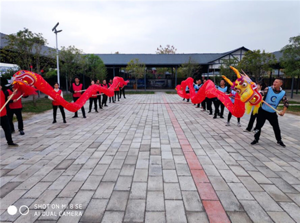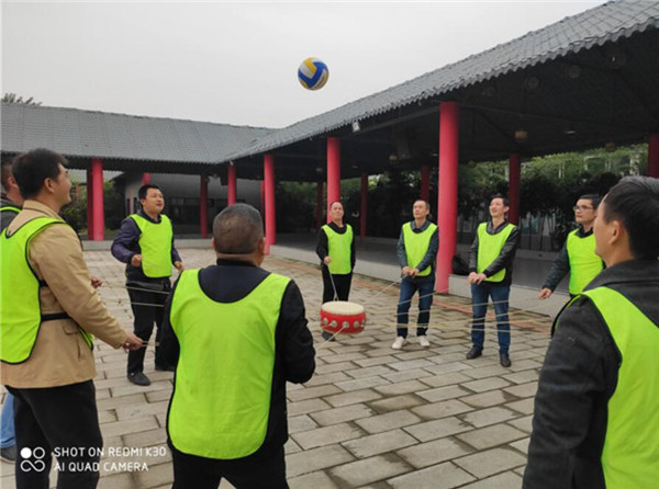圖/ “公雞下蛋”活動(dòng)現(xiàn)場(chǎng) 第二個(gè)是團(tuán)體項(xiàng)目“珠行千里”。每人一根PVC管,通過(guò)PVC管對(duì)接將乒乓球運(yùn)送至終點(diǎn)紙杯中,途中乒乓球不得掉落、回流,障礙物及紙杯不能移動(dòng)。這是一個(gè)考驗(yàn)團(tuán)隊(duì)快速溝通與團(tuán)結(jié)協(xié)作的項(xiàng)目,大家需要通力合作才能順利完成。盡管兩隊(duì)在運(yùn)球的過(guò)程中都困難重重,但隊(duì)員們毫不氣餒,快速調(diào)整隊(duì)形再出發(fā),直至將乒乓球成功運(yùn)送至紙杯中。 上午的活動(dòng)結(jié)束后大家都意猶未盡,中午稍事休息后便早早等候在活動(dòng)地點(diǎn)。下午場(chǎng)的第一個(gè)項(xiàng)目“鼓動(dòng)人心”在大家的歡呼聲中正式開(kāi)始。每隊(duì)利用手上的鼓將排球顛起來(lái),在規(guī)定時(shí)間內(nèi)顛球數(shù)量最多的隊(duì)伍獲勝。比賽剛開(kāi)始就迅速進(jìn)入白熱化階段,隊(duì)員們英姿盡展,根據(jù)排球的運(yùn)行軌跡前后左右快速移動(dòng)。最終,蛟龍隊(duì)以70球的絕對(duì)優(yōu)勢(shì)奪冠。 圖/ “鼓動(dòng)人心”活動(dòng)現(xiàn)場(chǎng) 最后一個(gè)項(xiàng)目是“龍騰盛世”。所有人齊心協(xié)力將零件組裝成一條活靈活現(xiàn)的龍,并在教練的指導(dǎo)下完成龍騰四海、盤(pán)龍?jiān)坪<坝锡垜蛩齻(gè)動(dòng)作。這是一個(gè)大型創(chuàng)作類(lèi)項(xiàng)目,趣味性和團(tuán)隊(duì)合作性極強(qiáng)。大家各司其職,制作龍骨、畫(huà)龍鱗、粘龍頭龍尾,不到一刻鐘的時(shí)間,兩條游龍就制作完成。在舞龍環(huán)節(jié),大家專(zhuān)心聽(tīng)、用心舞,兩隊(duì)的舞龍動(dòng)作都得到了教練的高度贊揚(yáng)。最后,在教練“風(fēng)水越來(lái)越順、生活越來(lái)越好”的祝福中結(jié)束了愉快而充實(shí)的團(tuán)建拓展活動(dòng)。 圖/ “龍騰盛世”活動(dòng)現(xiàn)場(chǎng) 團(tuán)建拓展活動(dòng)不但是比力量、速度、耐力和技巧,同時(shí)也是比團(tuán)結(jié)和協(xié)作能力。公司將繼續(xù)發(fā)揚(yáng)全民健身的精神,積極開(kāi)展員工喜聞樂(lè)見(jiàn)的活動(dòng),充分挖掘員工的特長(zhǎng)與潛能,使各項(xiàng)文體活動(dòng)能夠更具計(jì)劃性、目標(biāo)性、針對(duì)性、參與性和趣味性地開(kāi)展,增強(qiáng)員工的幸福感和獲得感,助力企業(yè)高質(zhì)量發(fā)展。 |